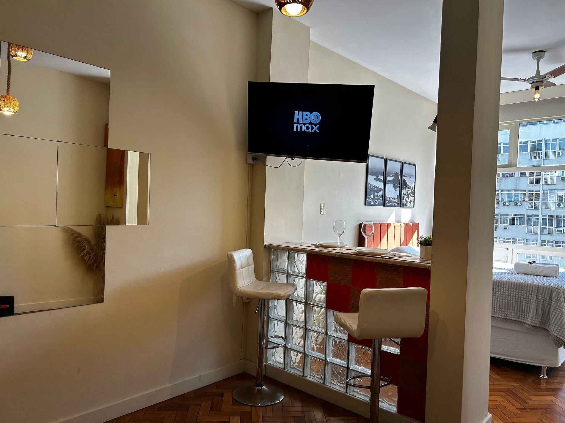 Temos supermercado e tendas perto, o Rio sul shopping fica a 350 MTS, o que destaca este apartamento e a localização. Nosso espaço conta com ar condicionado, tv smart, água quente com aquecedor a gás, cozinha equipada e uma bela vista para praia de Copacabana e o movimento da zona
