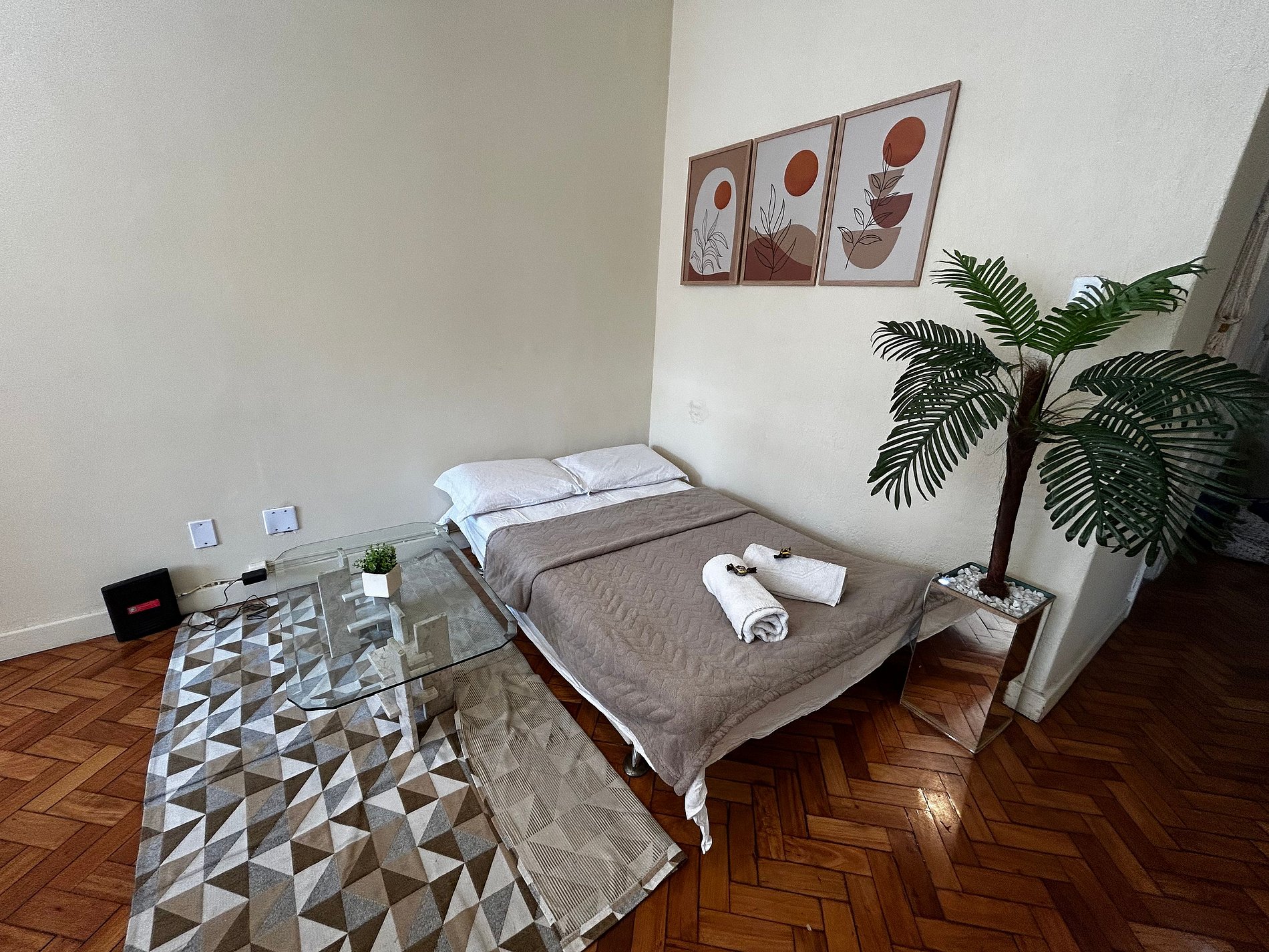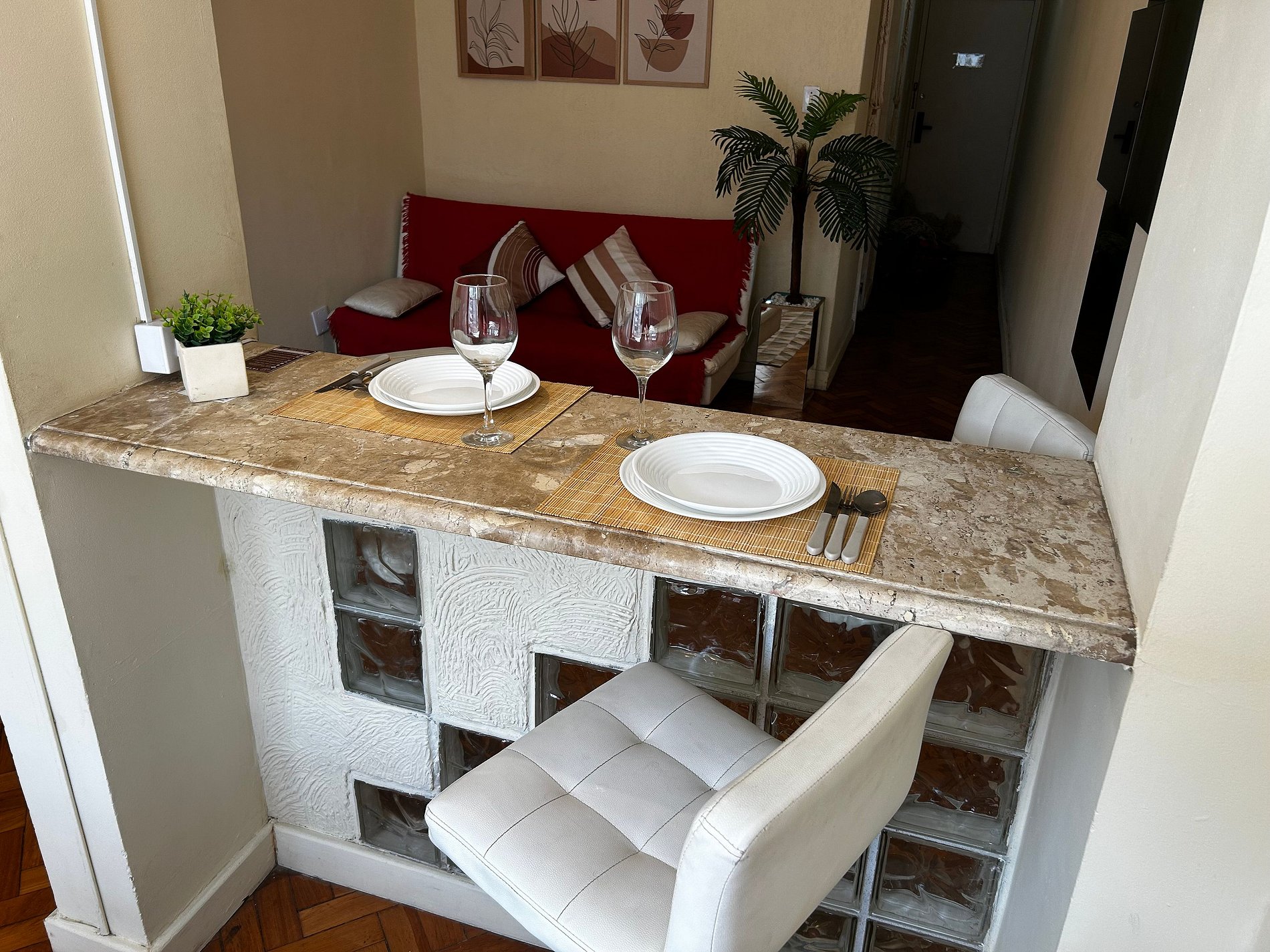 Espaço aconchegante para 2 pessoas, também temos um sofá cama onde poderia caber mais 2 pessoas se desejarem. O fato do apartamento ter maquina de lavar e cozinha o torna ideal para estancias mais longas.