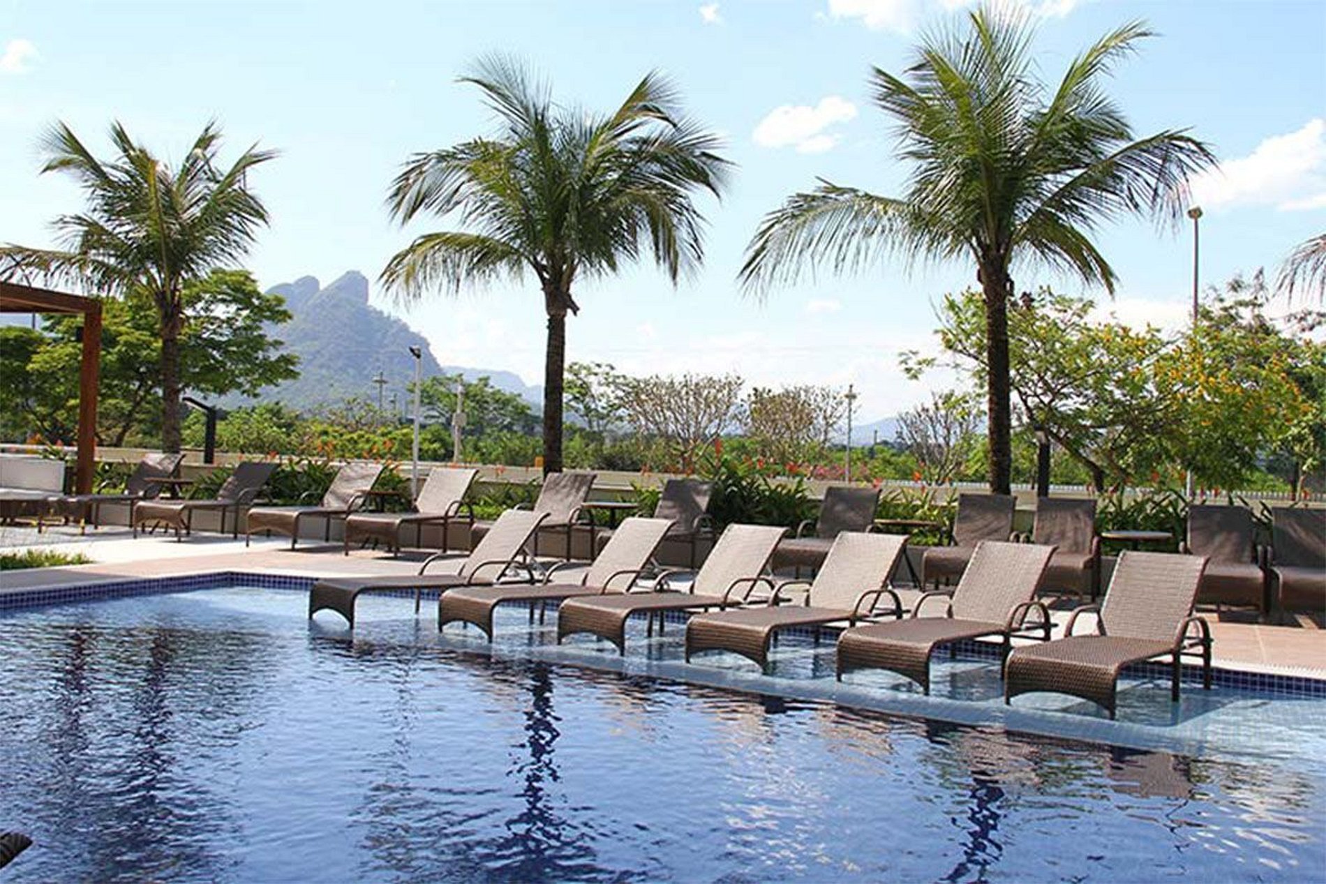 Suíte com mini cozinha e piscina